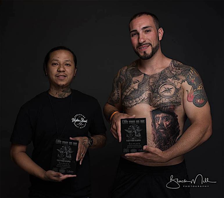 When I asked Phing about his most memorable tattoo, he recalls a woman who flew in from California to have him tattoo a tribute to her child who had recently passed away. Phing felt honored knowing that someone found his artistry so compelling they were willing to fly across the country for his services. In viewing his art, there is no question as to why; he earned First Place in Best Black & Grey Portrait, Second Place in Large Realism and Second Place in Best Chest Piece.