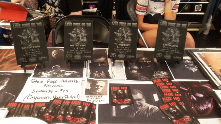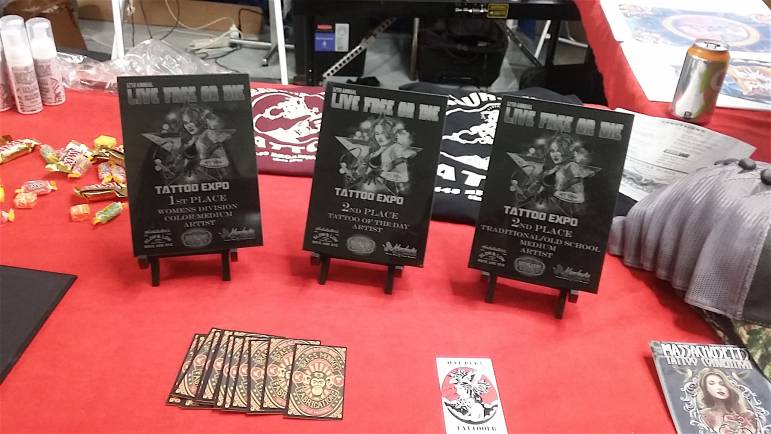 One would never know Thomas is the promoter of the expo unless told. He quietly walks the aisles observing any possible issues, connecting with vendors and discretely enjoying the event. When asked what his next tattoo will be, Thomas answers, “I do three-and-a-half hours and I’m done! I don’t even want to get tattooed anymore. I’m done with my pain. Now it’s time for me to enjoy life. With 12 successful expos under his belt, plans for his new music hall in the works and a cohesive network supporting his efforts, it seems Thomas will accomplish exactly that.
