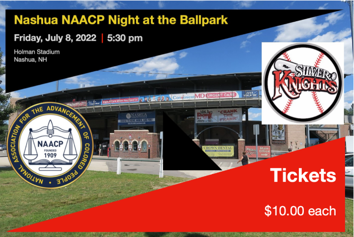 Please join our Greater Nashua Area Branch NAACP along with our sponsors (Nashua Silver Knights, Vermont Lake Monsters, New Hampshire Charitable Foundation) in our biggest fundraiser of the year. A portion of the proceeds will benefit our organization whose mission is to secure the political, education, social and economic equality of rights in order to eliminate race-based discrimination and ensure the health and well-being of all persons.