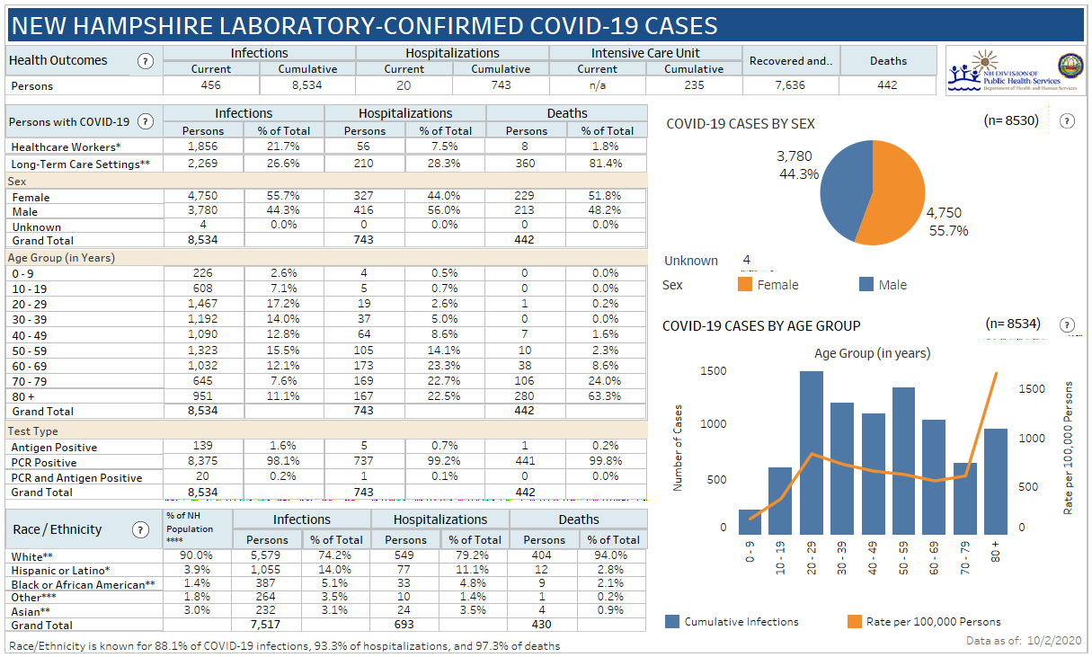 The most up-to-date laboratory testing data and positivity rates are available on the COVID-19 dashboards atย https://www.covid19.nh.gov/dashboard/overview.
