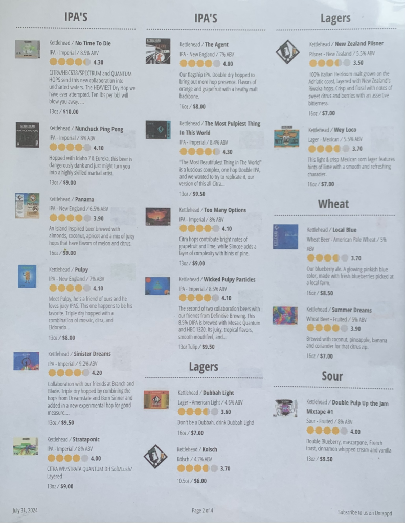 Below is the complete Nashua beer menu at the time of my visit: