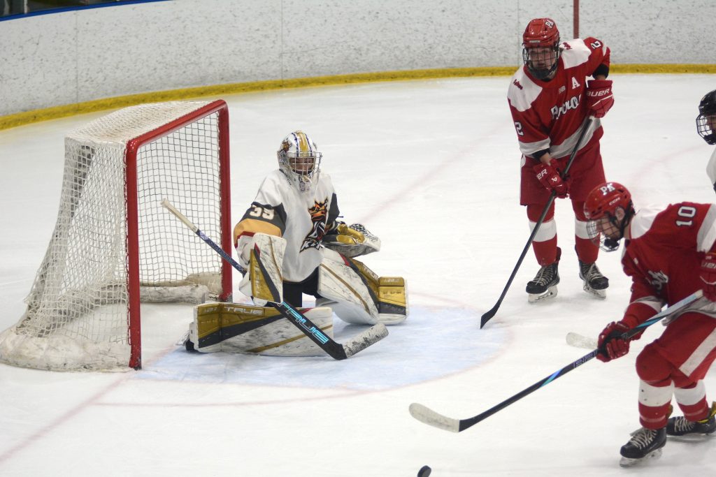 Earlier in the game, it was Pinkerton’s Daniel Richards who kicked off the game’s scoring on an assist from Mikey McGaffigan and Michael Saab with 4:10 left in the first period before Manchester’s Frank Tessier responded on a Cade Tripp helper a little more than a minute later.