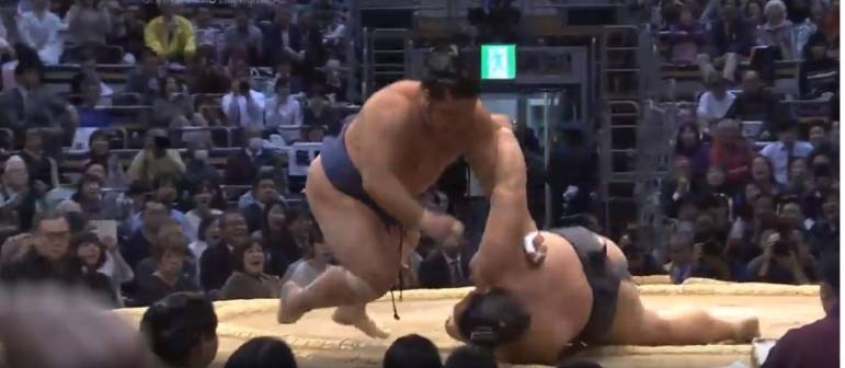 In their bout, Tochiozan was pushed back to the edge of the dohyo but managed to avoid the oshidashi and grab Kisenosatoโs side for a sukuinage as the two rikishi fell out of the dohyo almost simultaneously.