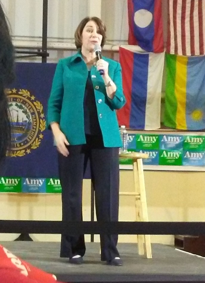 Arriving at Greater Boston Manchester Regional Airport at 4 a.m., Klobuchar held the room as she extolled her standing as one of the top five in the race. She infused her standard speech with bits about the impeachment proceedings that have forced her and three other senators in the race back to Washington right in the middle of their campaigns. She noted that she will be going back again after her appearances in New Hampshire. The Senate is due to take up the vote on acquittal of President Trump.