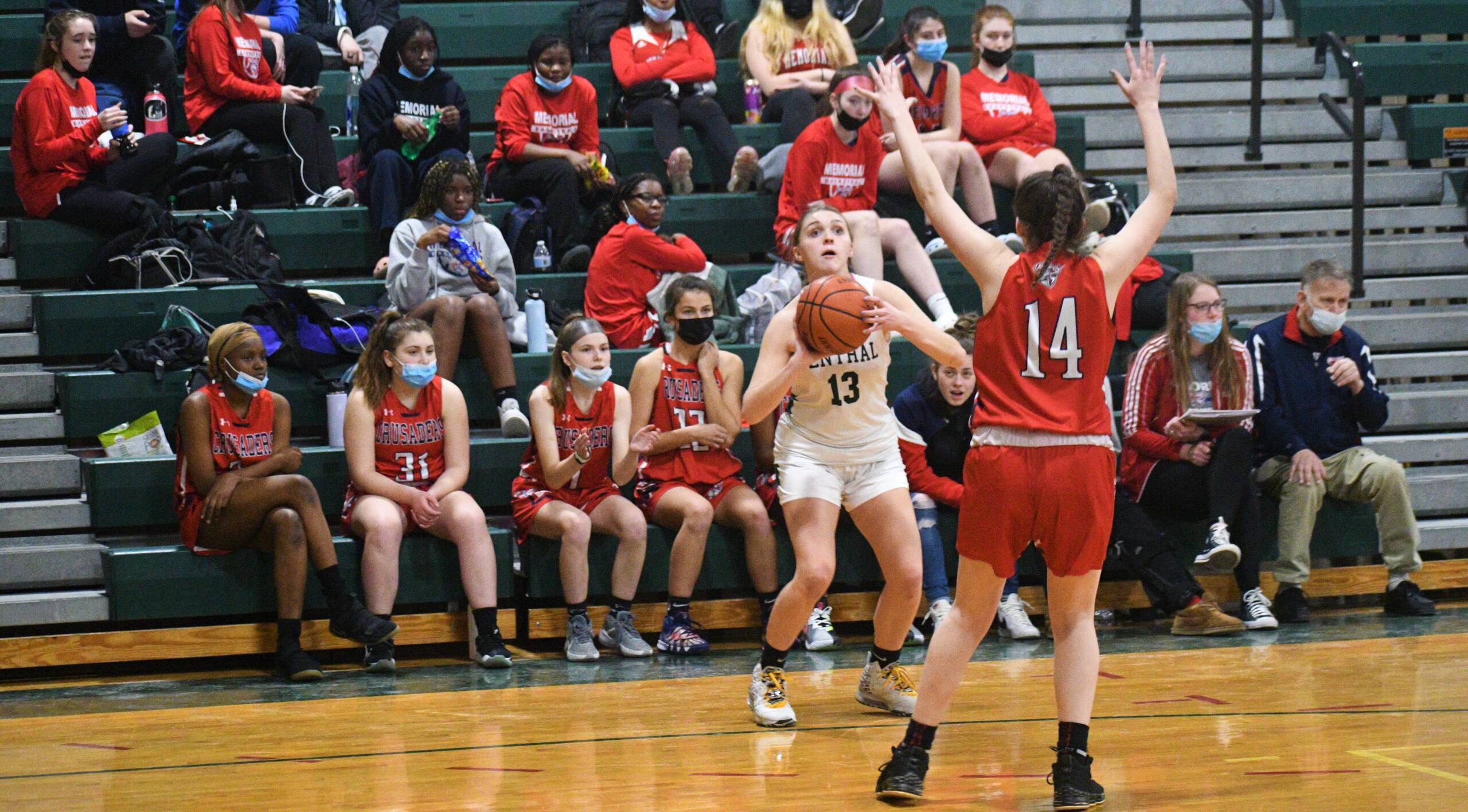 With Central taking the lead over the final few minutes of the fourth quarter, Memorial did manage to keep it close, as Taylor McNellyโ€™s three-pointer with just 17 seconds left (see 7:06 mark of video below) put the Crusaders back within two. Memorial then immediately fouled McKenna Schneiderman, who would dash any hopes of a Memorial come back with two of what would be seven made free throws in the fourth quarter.