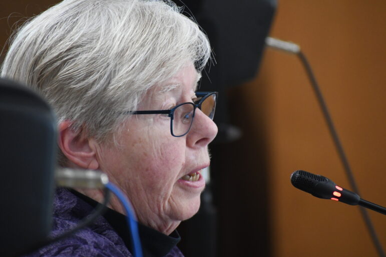 Judy Aron (R-South Acworth), one of the sponsors of this bill, spoke to the committee on it. If passed, it would require school board members to answer questions posed to them by individuals in a public hearing at a meeting open to the public within five business days.
