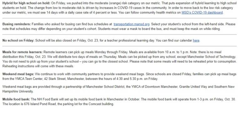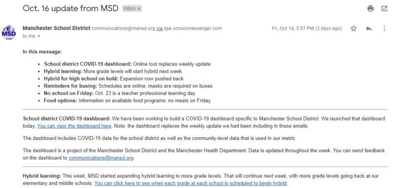 Oct. 16 update from Manchester School District