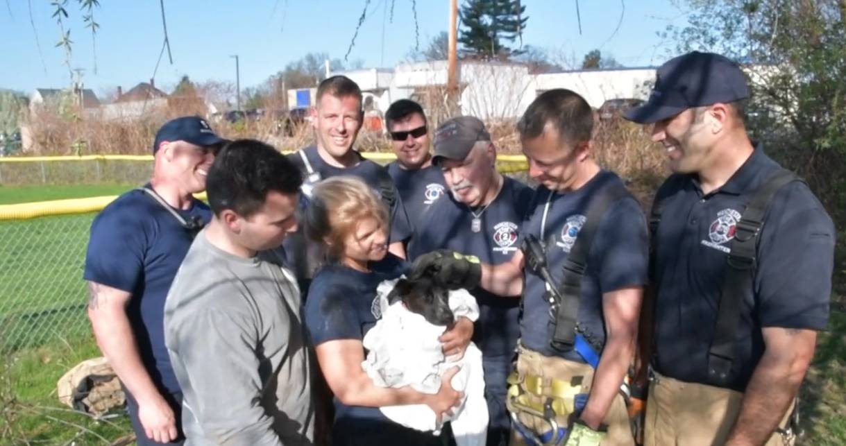 Lateย Tuesdayย afternoon someone heard Sookie in the culvert/sewer pipe which empties in to a swampy area and runs under the Wolfe Park ball field. Sookie was approximately 10 feet in and scared and wouldnโt come out. So Skiadis reached out to MFD who sent the Rescue 1 crew who tried several methods, including using food, to lure her out, but she kept going further in the pipe.
