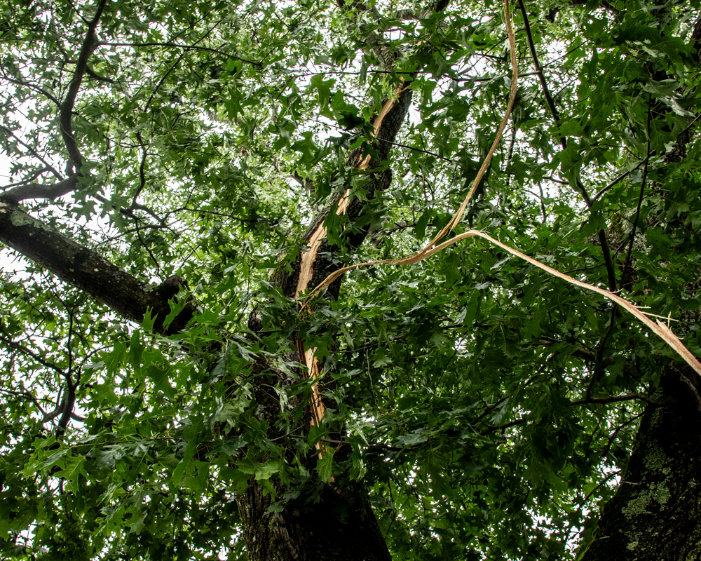 A tree struck by lightning sparked a fire at 370 Boynton Street on June 23. Photo/Jeffrey Hastings