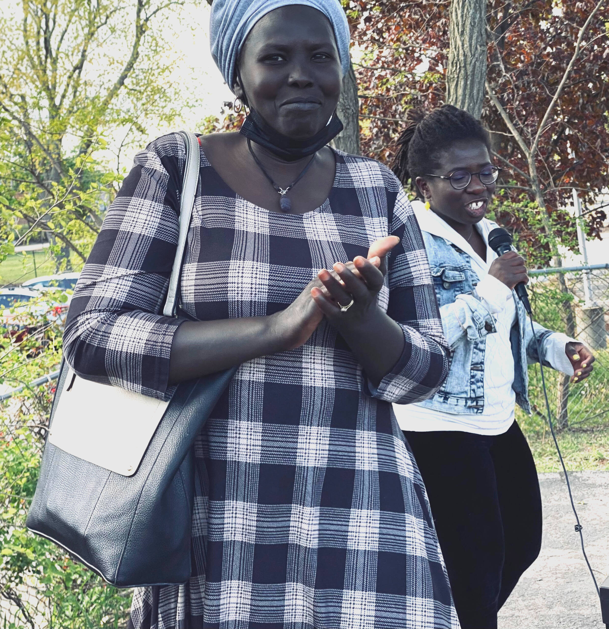 Ageth Okeny, hearing about the protest the night before, walked from her West Side home on South Main Street, to the jail to show her support. Raising both arms, she cheered as the convoy rounded the corner of Valley and Willow streets, horns tooting. Okeny, who came to Manchester 20 years ago from South Sudan, said she felt it was important to show the women inside there are people on the outside supporting them.