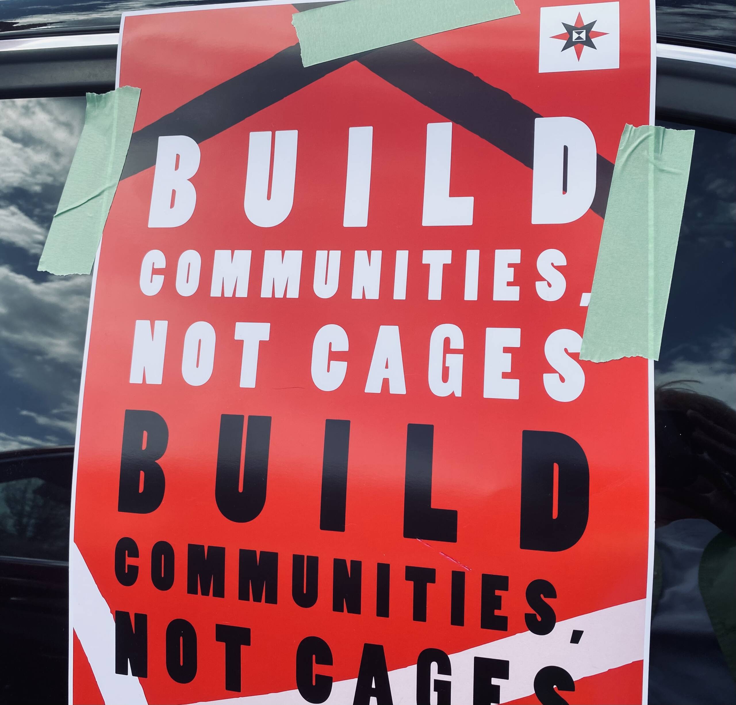 Sponsored by the American Friends Service Committee (AFSC), the activists affixed signs and flags – “Build Communities Not Cages,” “End Deportation,” and “Free Them All” – to their cars as Grace Kindeke of AFSC, leading the convoy, drew attention to the motorcade with a bullhorn. The event was part of AFSC’s “Free Them All” days of action.