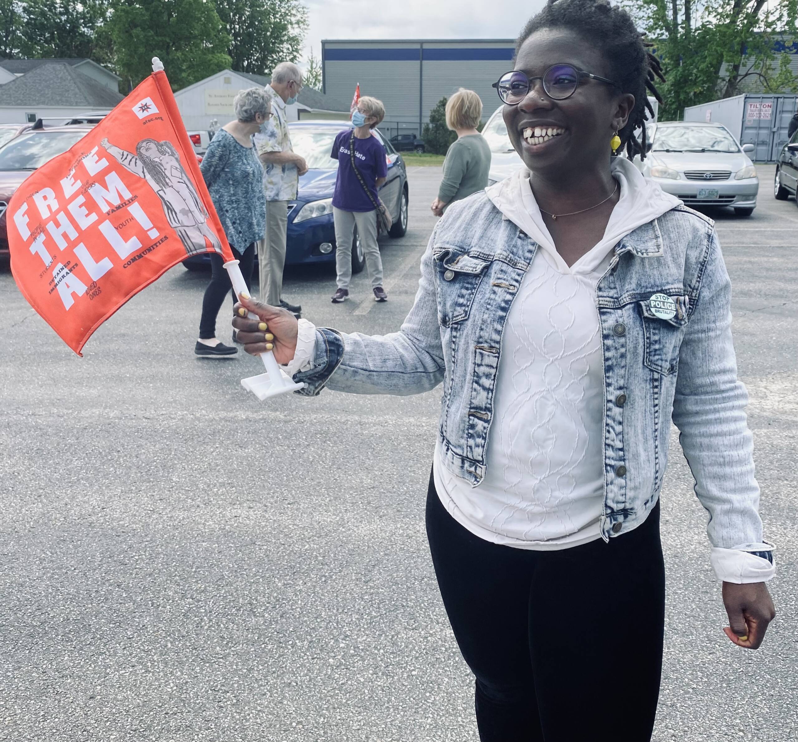 Kindeke gave a running commentary, which was live-streamed on Facebook https://www.facebook.com/AFSCNHProgram , as she led the convoy of 17 cars in circling the jail. She said AFSCNH formed a collaboration among New Hampshire, Maine and Vermont with the National Council for Incarcerated and Formerly Incarcerated Woman and Girls (NCIFIWG) to fight to free women and girls from prisons.