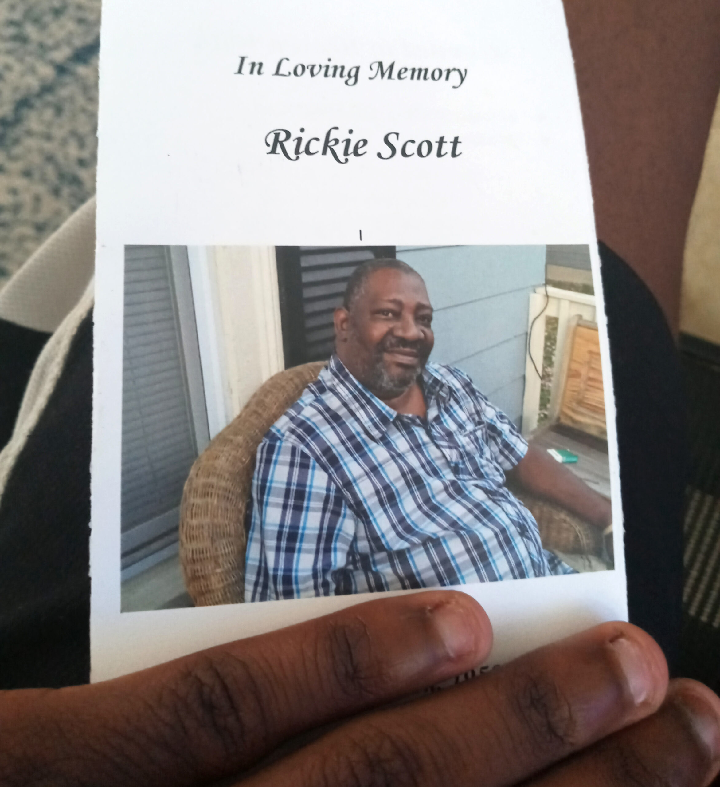 Rick came over to my house the weekend before he passed away. He gave money to my mom and me, stayed over for a little while, then left and went back home.
