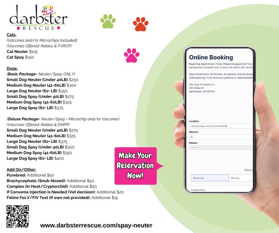 Darbster is accepting cats & dogs for spay/neuter services on the following dates: