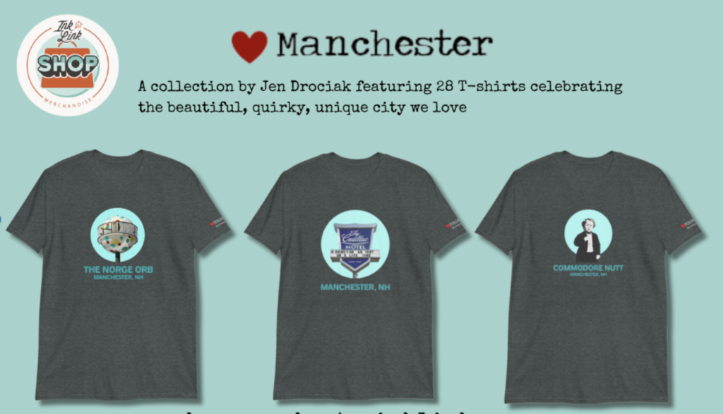 MANCHESTER, NH โ€“ Big news here at the Ink Link. After what feels like a long and round-about journey, we’ve launched our online Ink Link SHOP with a very special collection: @lovemanchester by Jen Drociak.