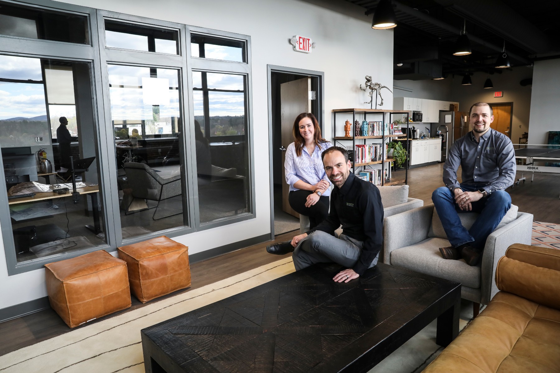 Some of the members of Mainstay Technologies’ ‘charity team,’ who decide what kind of work to support through the company’s donor-advised fund at the New Hampshire Charitable Foundation. From left, Erin Mealey, Ryan Barton and Eric Shanley. Photo/Cheryl Senter