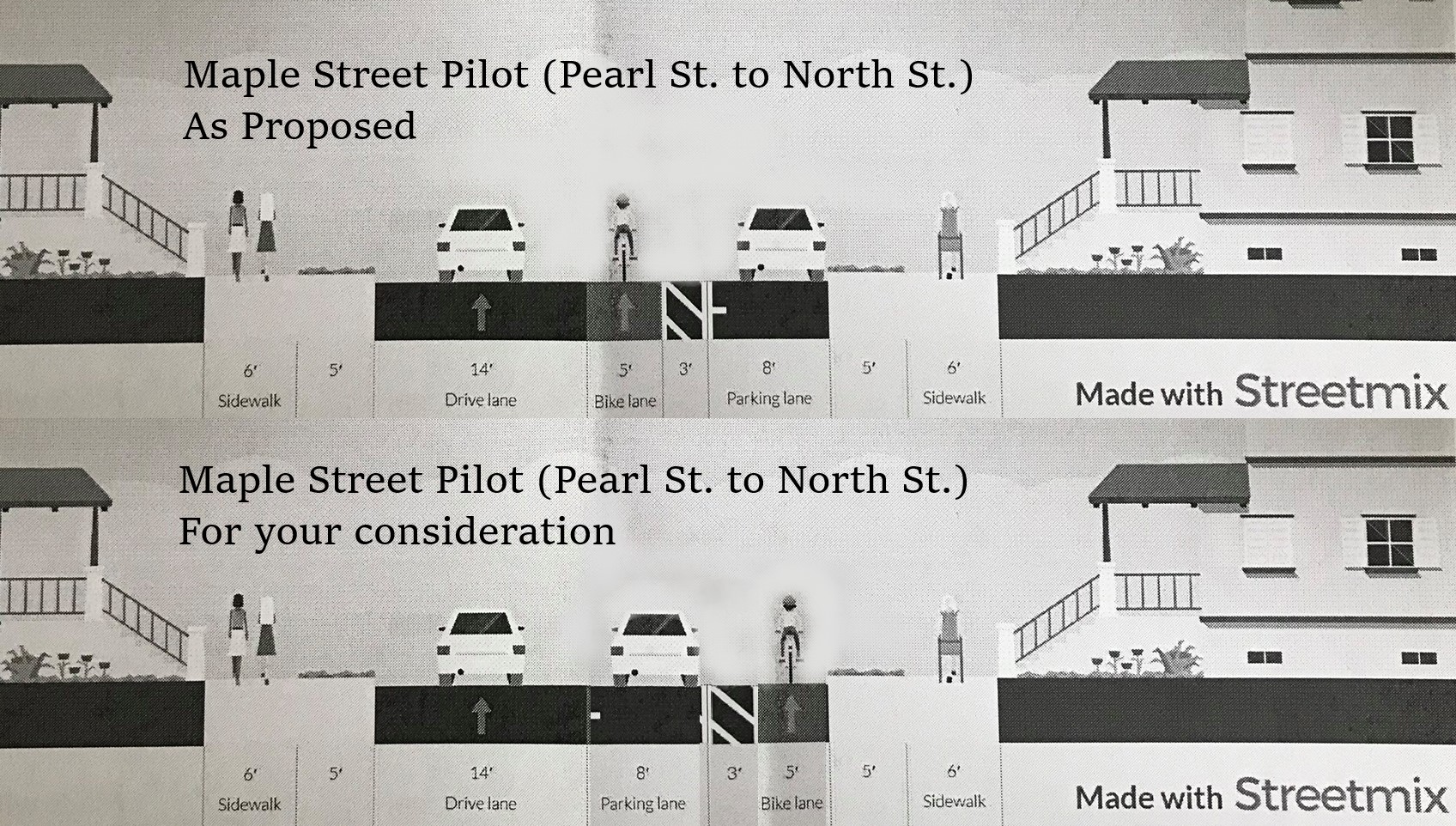 Ward 2 Alderman Will Stewart and Department of Public Works staff have invited the neighborhood to discuss the pilot project a meeting this evening 6 p.m. at Mt. Carmel Rehabilitation and Nursing Center, (235 Myrtle St.). Between tonight’s meeting and a second meeting to collect public feedback on the change, the neighborhood should consider supporting a fully-protected bike lane along Maple Street and eventually Beech Street.