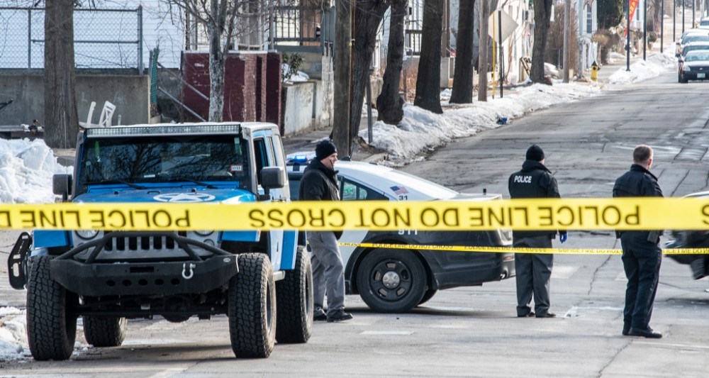 Police set up crime tape at a location near Auburn and Pine streets in connection to a shooting death. Photo/Jeffrey Hastings