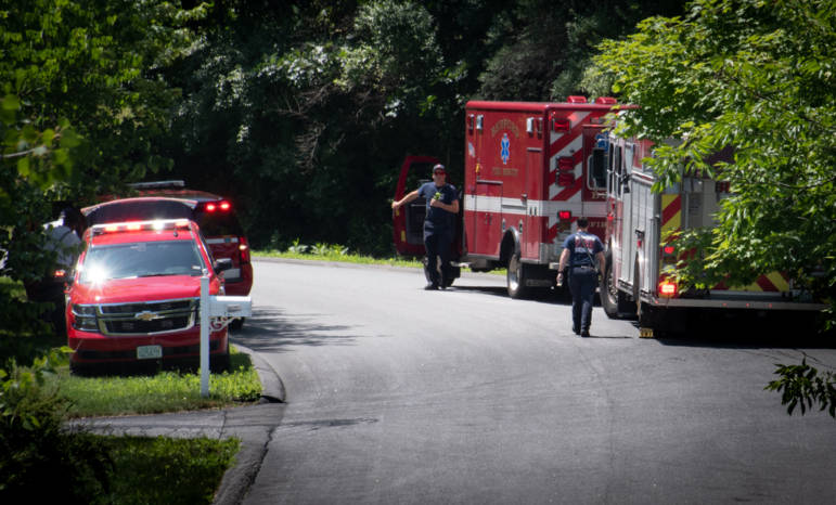 Bedford police and medical responders on Galloway Road Tuesday. Photo/Jeffrey Hastings, frameofmindphoto.com