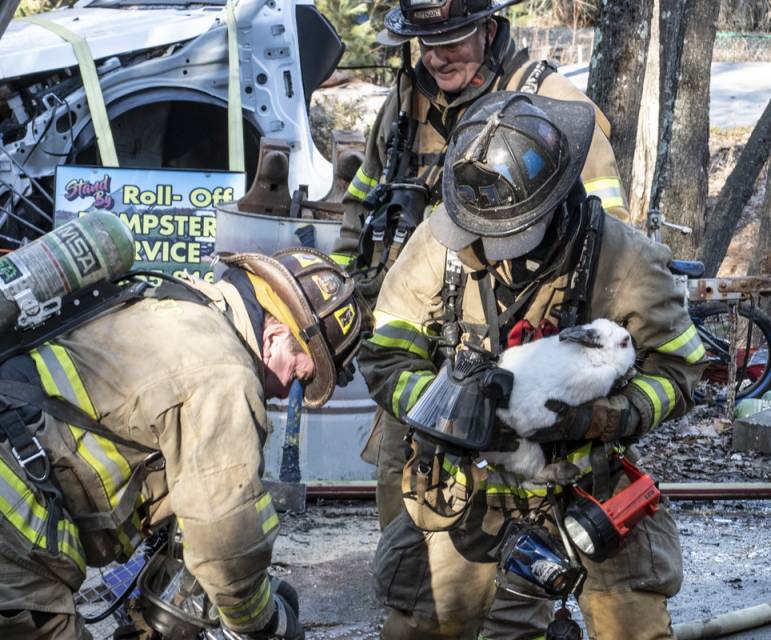 Firefighters were able to rescue several pet rabbits, although some perished in the fire. Photo/Jeffrey Hastings