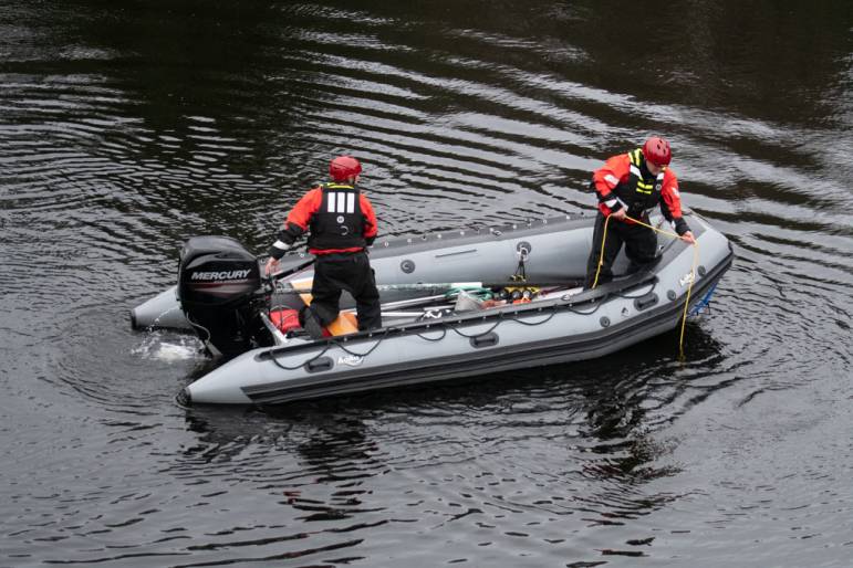 Given the inability to confirm if the vehicle was occupied, mutual aid assistance was requested form the City of Nashua Fire Rescue Dive Team. NFR divers were able to locate and gain entry into the submerged vehicle confirming it was unoccupied.