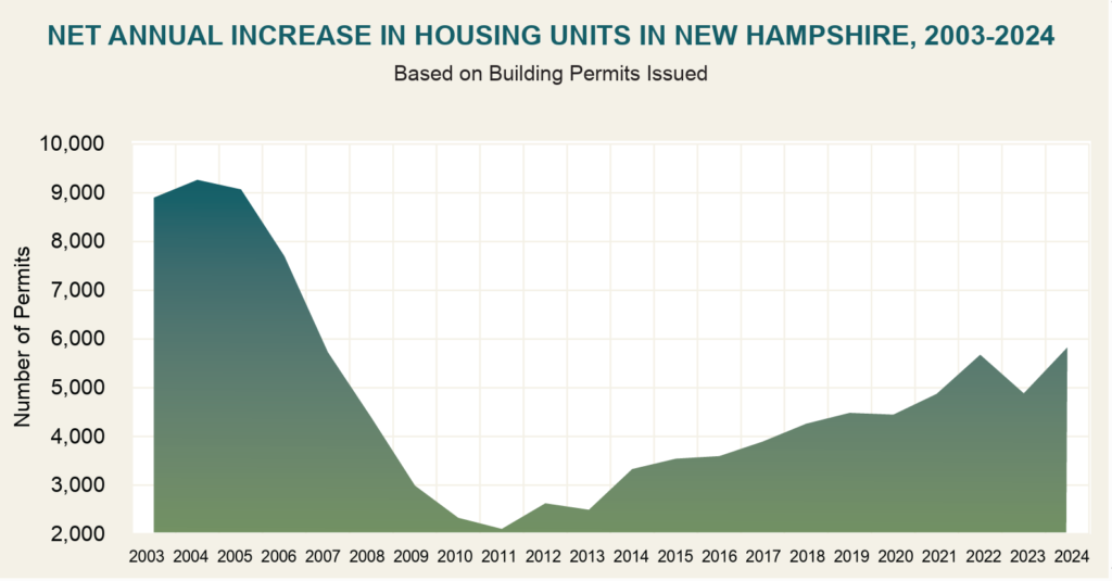 The number of building permits for housing units issued in 2024 was as high as it’s been since 2006. If all of the permits were used, the state added 5,822 housing units in 2025, the Current Estimates and Trends in New Hampshire’s Housing Supply for 2026 found.