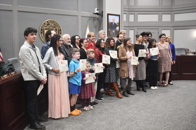 Manchester, NH – The Manchester Arts Commission (MAC) announced the winners of the 15th City Employee & Family Art Show on Tuesday night at City Hall. Matt Serven was awarded Best of Show for works of stained glass, Untitled 1 and Untitled 2. Ethan Robinson won the National Art Programโs Art Education Award for the sculpture Soda Pop Culture. First place went to Jill Robinson for Papyus ex machina (Amateur), Tom Jennings for Adams Point (Intermediate), Andrew Freshour for The Beehive (Professional), Max Robert for Skits & Giggles (Teen), and Pascal Dionne for Charcoal (Youth). The complete list of winners and honorable mentions is below.