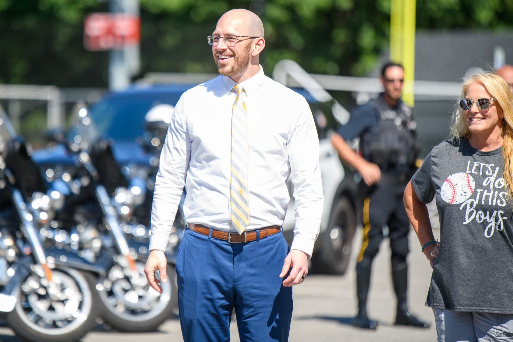As the players and coaches left town Friday, they were escorted by state and city police, as well as Manchester firefighters.