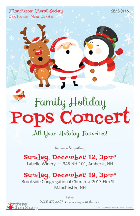 MANCHESTER, NH โ The Manchester Choral Society presents Holiday Favorites, Carols and Sing-a-longs for all ages to enjoy! For tickets call 603-472-6627 or visit www.mcsnh.org