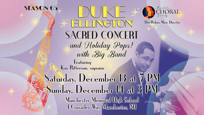 MANCHESTER, NH – The Manchester Choral Society (MCS) presents a festive winter concert series featuring Duke Ellington’s Sacred Concert, alongside a heartwarming selection of Holiday Family Pops. The concerts are scheduled for December 13th at 7 PM and December 14th at 3 PM at Manchester Memorial High School, 1 Crusader Way, Manchester, NH.