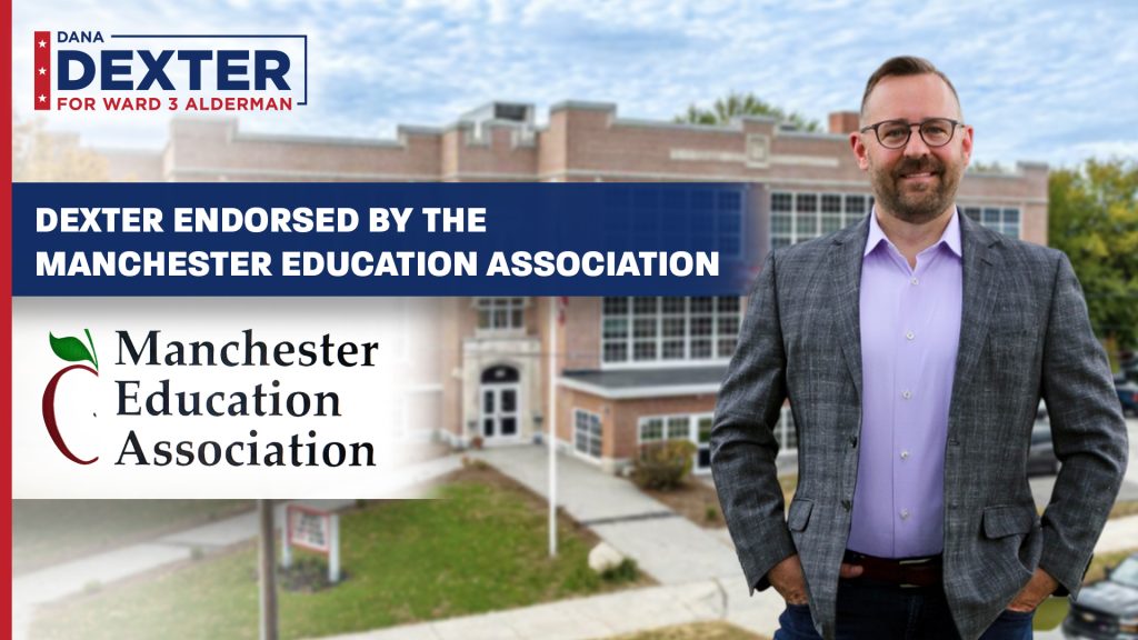 โI am honored to have the endorsement of the Manchester Education Association,โ Dexter said. โFamilies look at our schools when deciding to move here, businesses depend on a skilled workforce, and safe, well-resourced schools help reduce long-term costs for the city. With both local and state funding challenges ahead, we need leaders who can bring all parties to the table and find solutions that strengthen schools without placing new burdens on residents. In Ward 3, where our neighborhoods and downtown carry so much of Manchesterโs future, I will work every day to ensure our students, teachers, and schools have the tools they need to thrive.โ