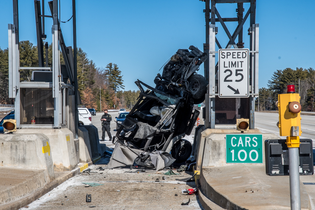 At approximately 10:13 a.m. on March 8, 2021 Troopers from the New Hampshire State Police Troop B Barracks along with fire and medical personnel from the Bedford Fire Department responded to the report of a motor vehicle crash at the toll plaza southbound on the F.E. Everett Turnpike in Bedford.ย