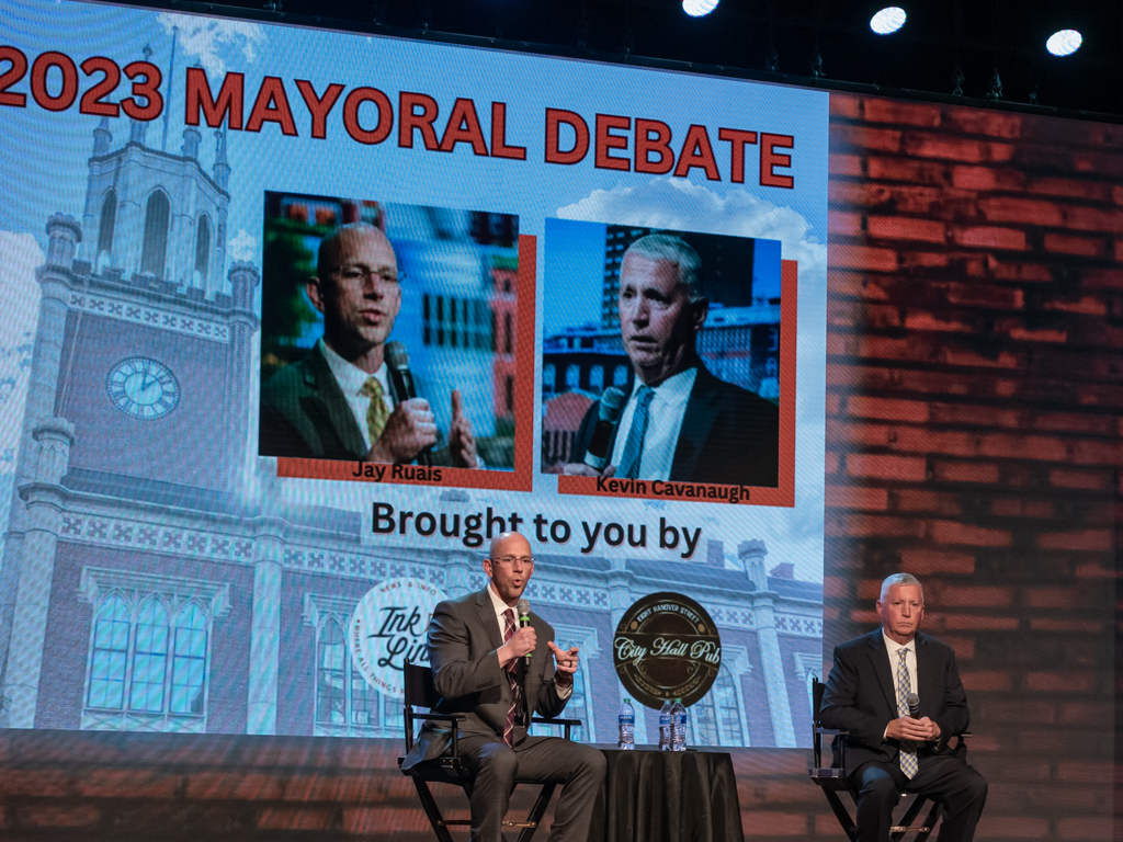 Manchester Ink Link and City Hall Pub hosted candidates Jay Ruais and Kevin Cavanaugh for a largely civil discussion on the issues the cityโs next mayor will inevitably need to address.