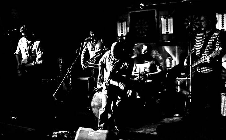 In the back corner of the bar, beside stacks of empty keg barrels, there’s a drum kit and amplifiers in a cloistered space where the Manchester-based band Scalawag plugs in.