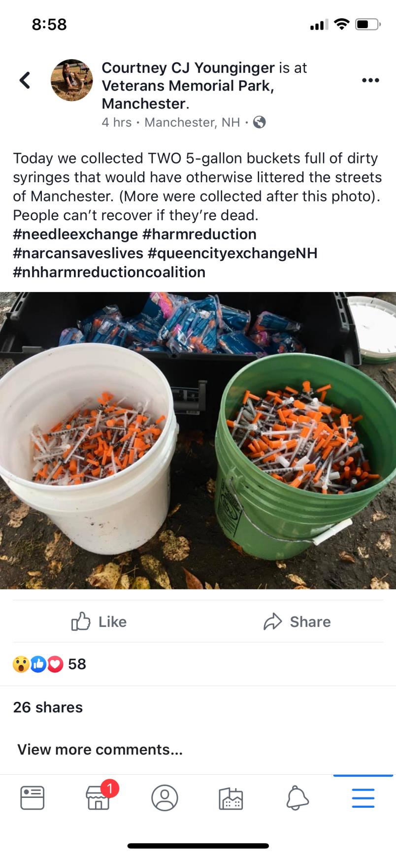 Thomas is skeptical that the program is taking enough used syringes out of circulation. In late October, the department found over 100 used syringes in the woodline of Derryfield Park, near two schools. She said it was the most needles ever collected from one site.