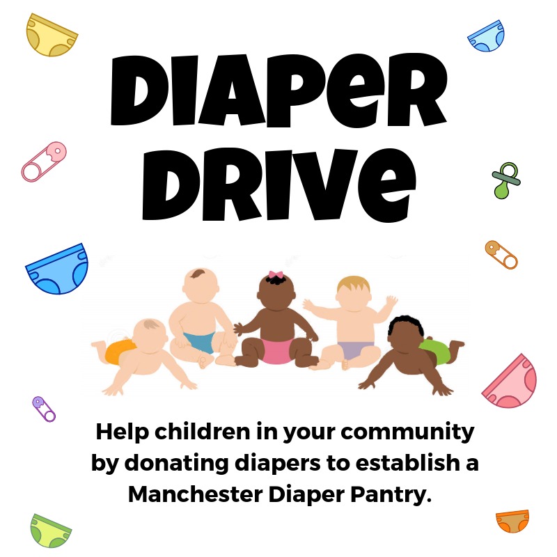 UPDATE: In order to ensure there is an adequate supply of diapers to help community families in need, the opening date for the Manchester Diaper Pantry has been rescheduled to Saturday, October 5 from 9 a.m.-12 p.m. at MakeOver Ministry.
