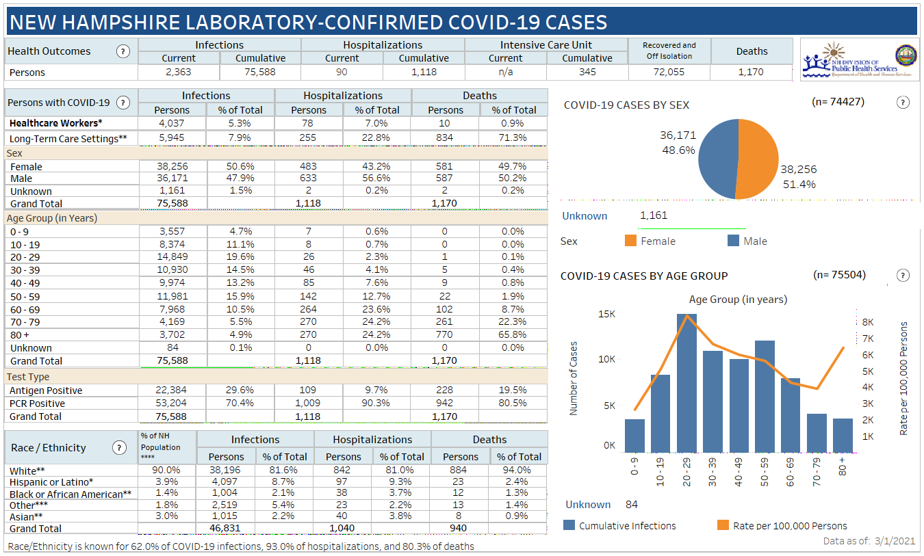 New Hampshire 2019 Novel Coronavirus (COVID-19) Summary Report (updated March 1, 2021, 9 a.m.)
