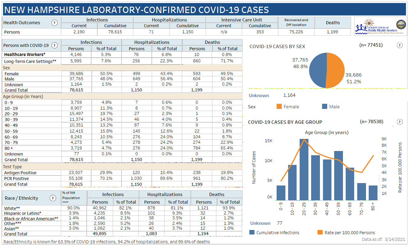 New Hampshire 2019 Novel Coronavirus (COVID-19) Summary Report (updated March 14, 2021, 9 a.m.)