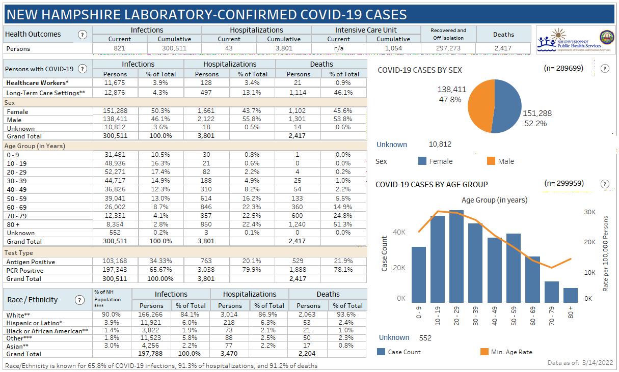New Hampshire 2019 Novel Coronavirus (COVID-19) Summary Report (updated March 14, 2022, 9 a.m.)