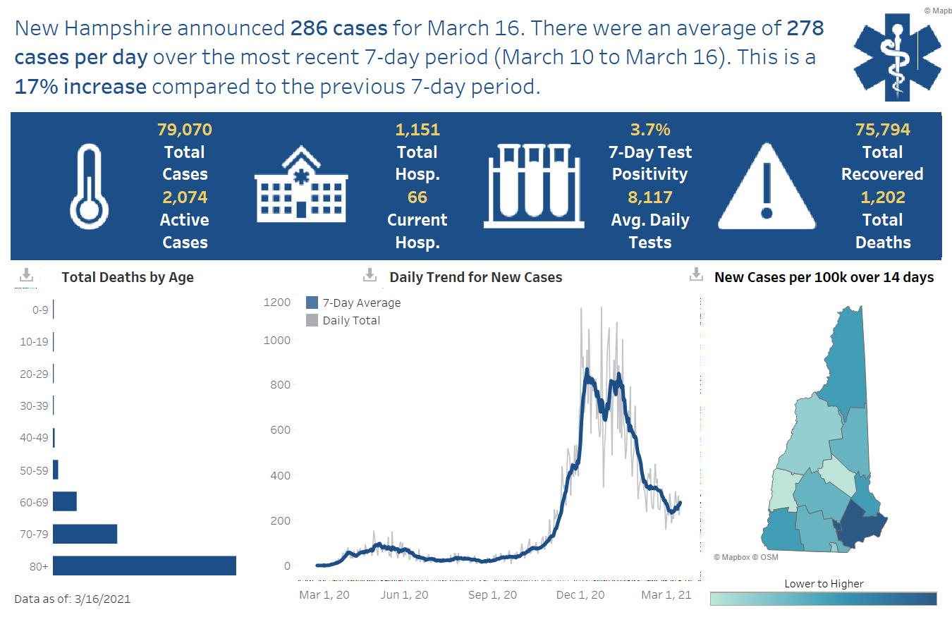 New Hampshire 2019 Novel Coronavirus (COVID-19) Summary Report (updated March 16, 2021, 9 a.m.)