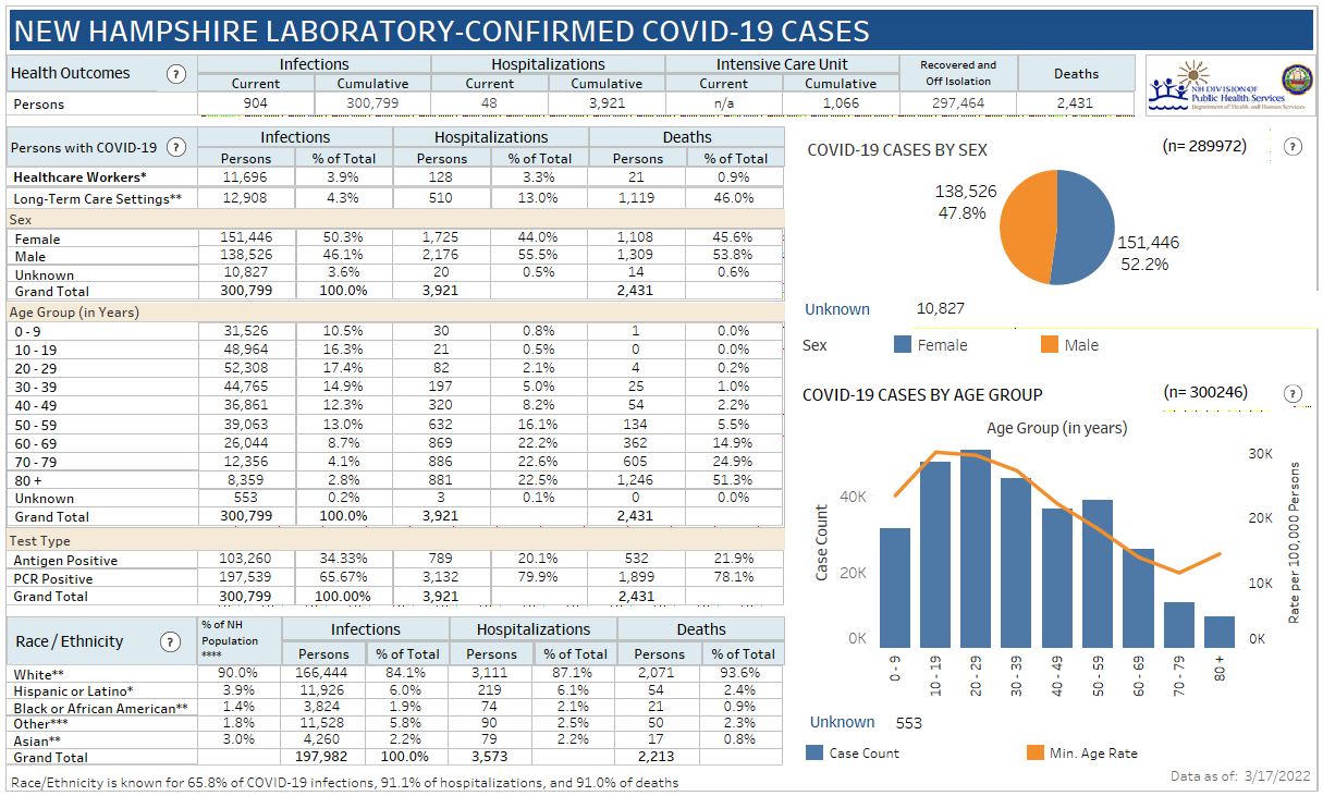 New Hampshire 2019 Novel Coronavirus (COVID-19) Summary Report (updated March 17, 2022, 9 a.m.)