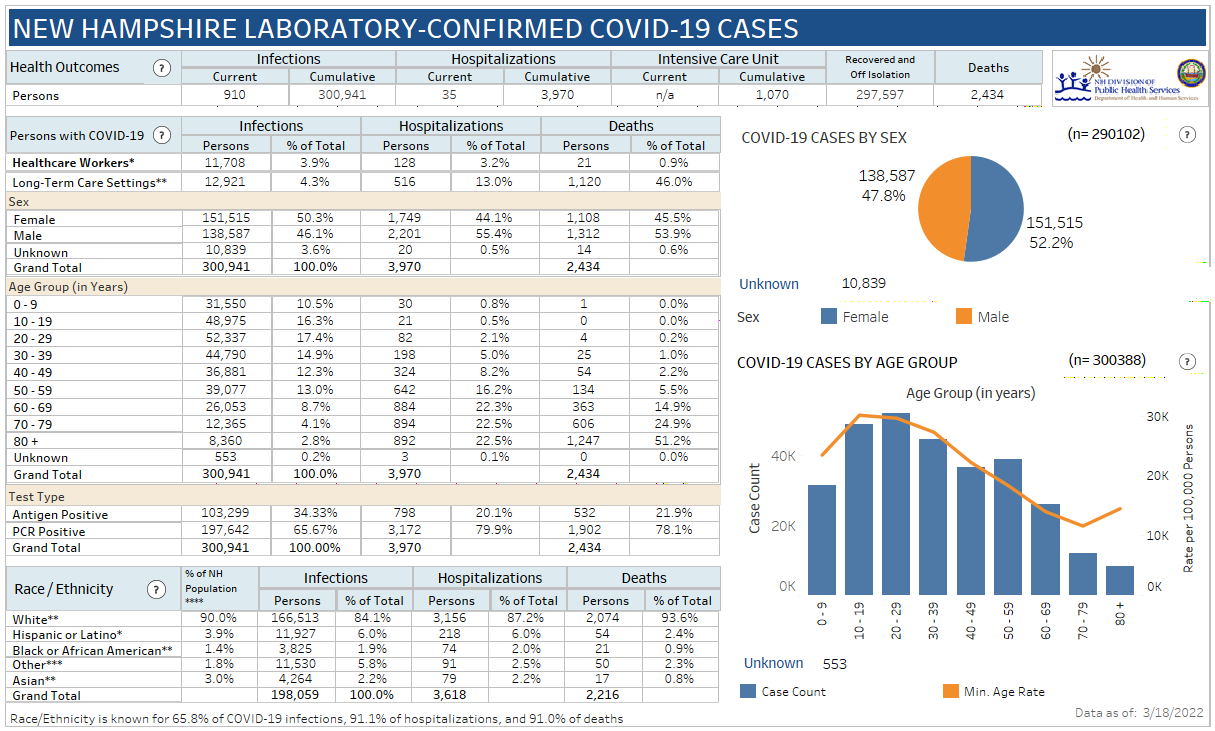New Hampshire 2019 Novel Coronavirus (COVID-19) Summary Report (updated March 18, 2022, 9 a.m.)