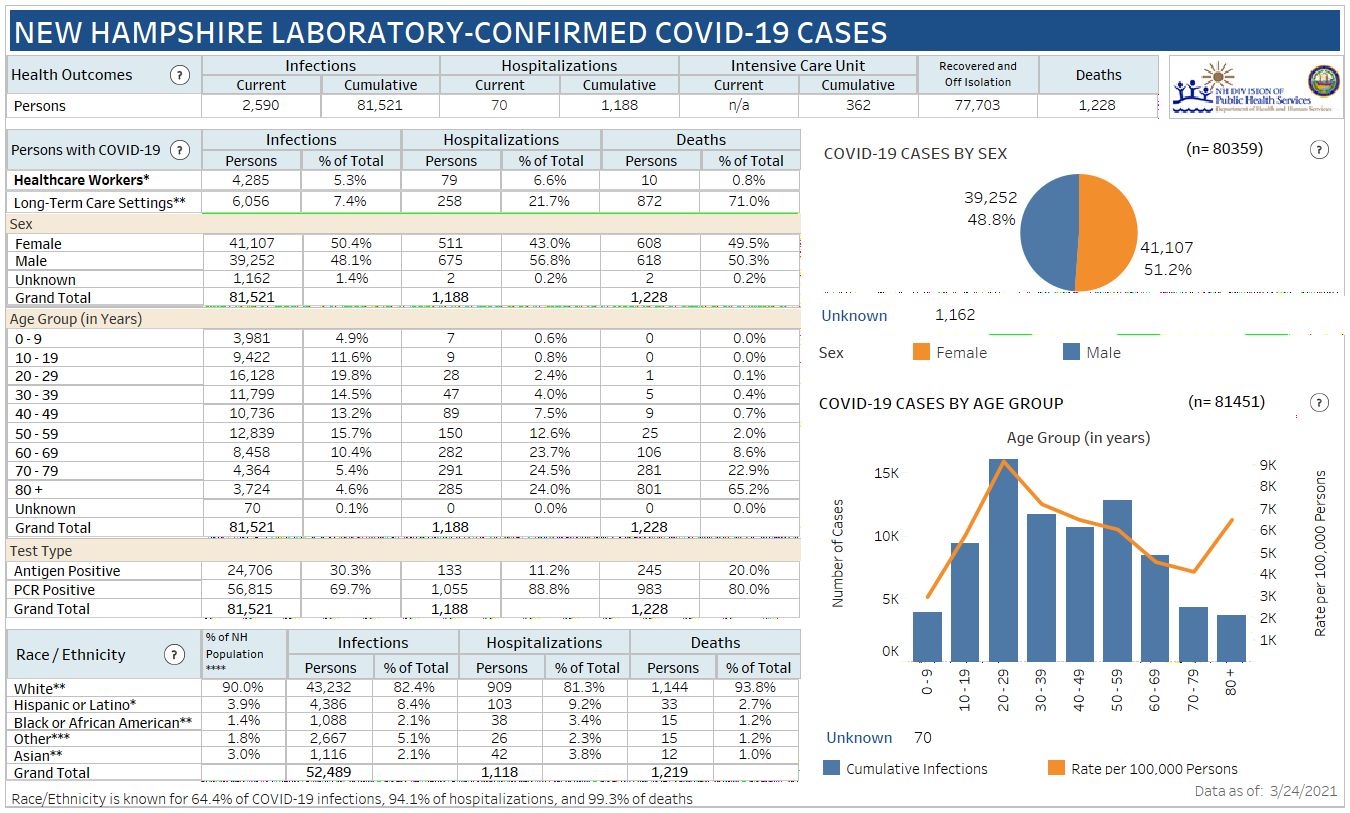 New Hampshire 2019 Novel Coronavirus (COVID-19) Summary Report (updated March 24, 2021, 9 a.m.)
