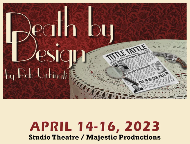 A comedy by Rob Urbinati / What happens when you mix the brilliant wit of Noël Coward with the intricate plotting of Agatha Christie? Set during a weekend in an English country manor in 1932, Death by Design is a hilarious, delightful and mysterious mash-up of two of the greatest English writers of all time. Edward Bennett, a playwright, and his wife, Sorel Bennett, an actress, flee London and head to Cookham after a disastrous opening night. But various guests arrive unexpectedly – a conservative politician, a fiery socialist, a nearsighted ingénue, a zany modern dancer – each with a long-held secret. When one of the guests is murdered, it’s left to Bridgit, the feisty Irish maid with a macabre interest in homicide, to solve the crime. www.majestictheatre.net or (603)669-7469