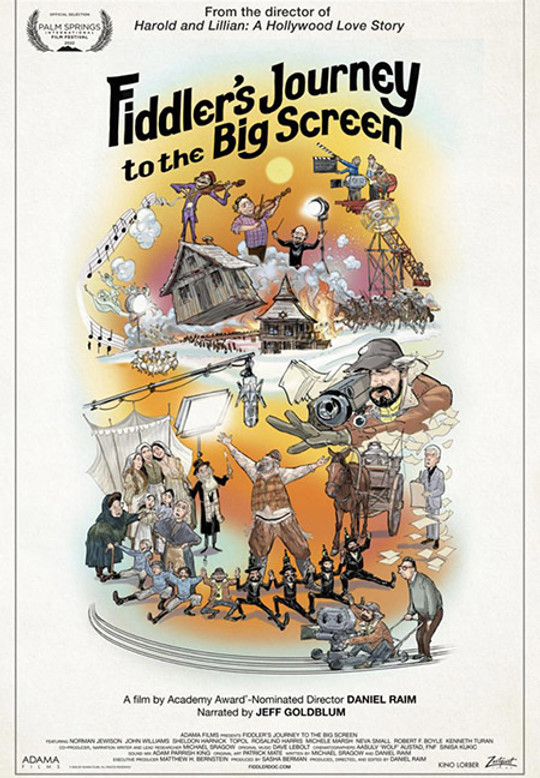 Narrated by Jeff Goldblum, Fiddler’s Journey to the Big Screen captures the humor and drama of film director Norman Jewison’s quest to recreate the lost world of Jewish life in Tsarist Russia and re-envision the beloved stage hit as a wide-screen epic. The film includes behind-the-scenes footage and never-before-seen stills as well as original interviews with director Jewison, Topol (Tevye), composer John Williams, production designer Robert F. Boyle, film critic Kenneth Turan, lyricist Sheldon Harnick, and actresses Rosalind Harris, Michele Marsh, and Neva Small (Tevyeโs daughters). The film explores how the experience of making Fiddler deepened Jewison as an artist and revived his soul.