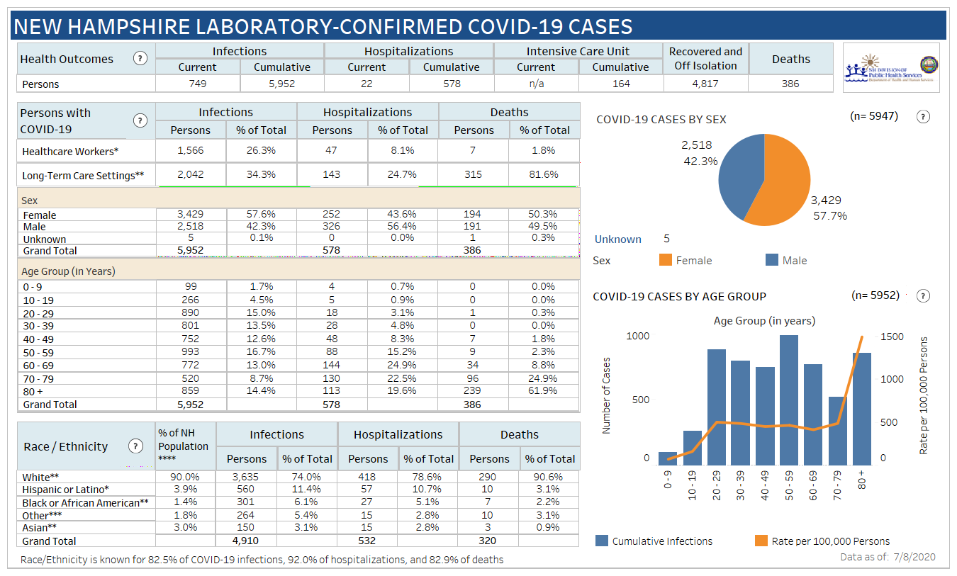 The most up-to-date laboratory testing data, positivity rates and vaccination data are available on the COVID-19 dashboards atย https://www.covid19.nh.gov/dashboard/overview. For additional hospitalization data, please visit the New Hampshire Hospital Associationโs COVID-19 information page atย https://nhha.org/index.php/whats-new/1545-coronavirus-disease-2019-covid-19-outbreak.