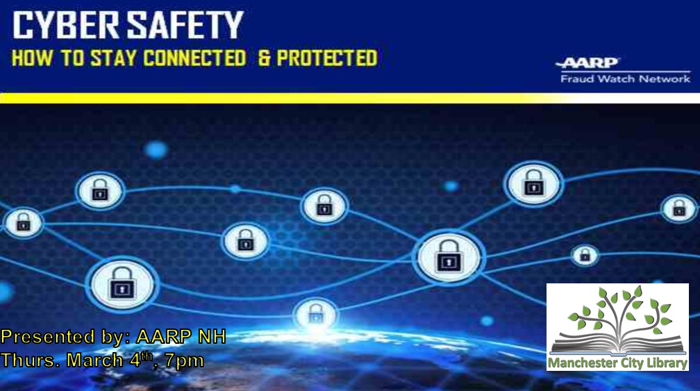 Online fraud is a serious and growing threat. AARP Fraud Watch Network will arm you with the tools you need to spot and avoid online fraud and scams to protect yourself and your family. Join the Manchester City Library for a virtual lesson in Fraud protection on Thursday, March 4, at 7 p.m. via Zoom.