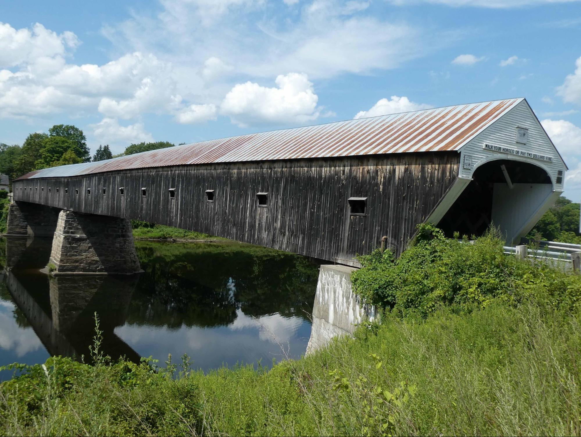 We had parked in a small parking lot and walked across a small covered pedestrian bridge over the picturesque Tioga River to reach the mill. When we returned to the car we noticed a hiking trail along the river and decided to take a walk. Because of the drought the river was reduced to a rocky stream and there was no information about the length of the trail; we walked for about half an hour and then retraced our steps. This picture is taken from the covered bridge.