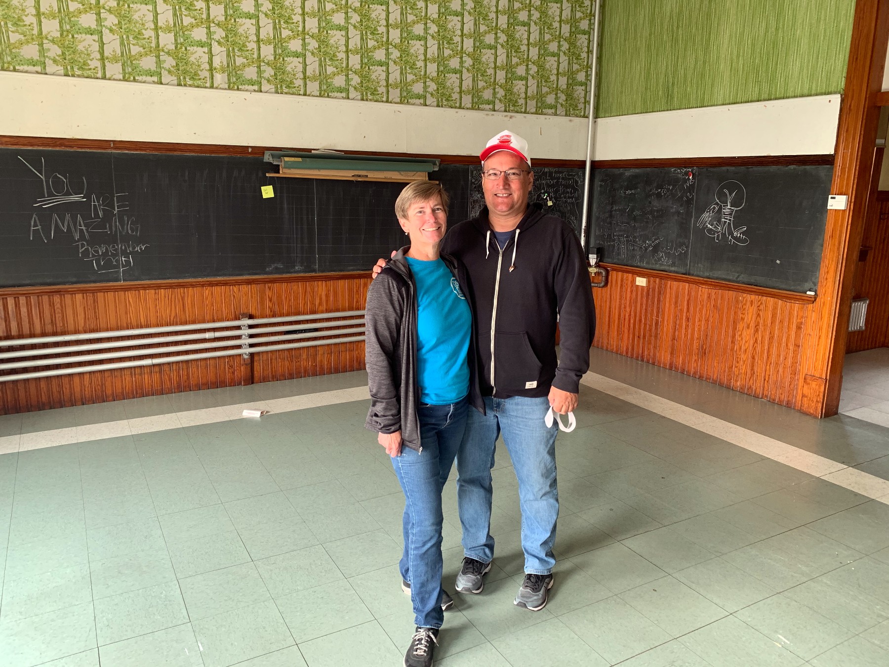 1269 Cafe owners Mary and Craig Chevalier inside the former St. Casimir school building on Union Street. They purchased the building last Wednesday and plan to convert it into a place to help the homeless with 32 beds and on-site services. Photo/Ryan Lessard