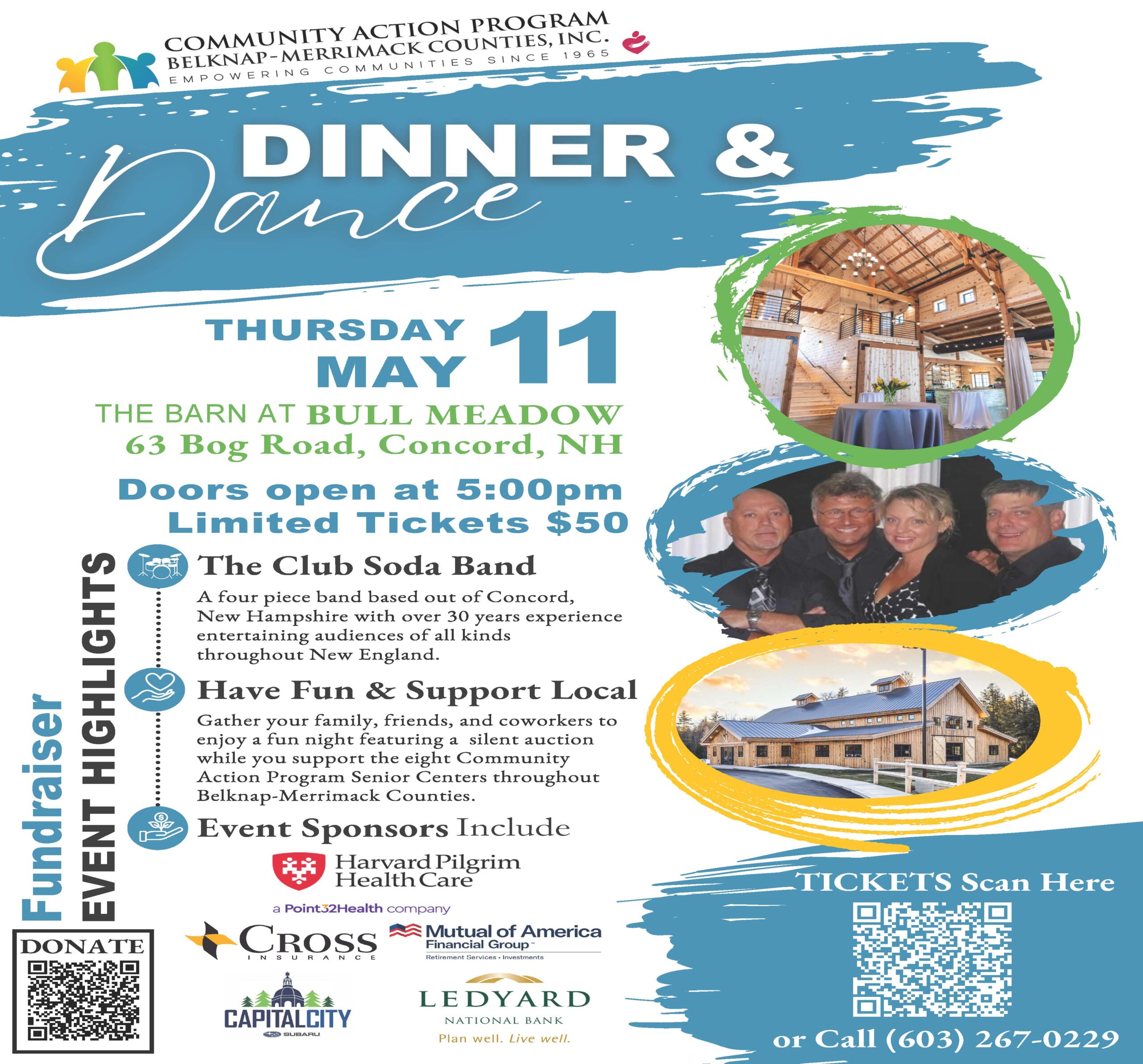 CONCORD, NH โ Gather your family, friends, and coworkers to enjoy a fun night May 11 at the Barn at Bull Meadow, featuring the Club Soda Band, a silent auction, and raffle items while you support the eight Community Action Program Senior Centers throughout Belknap-Merrimack Counties.